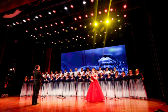 表彰中間,來(lái)自集團(tuán)各條戰(zhàn)線的員工穿插表演了《長(zhǎng)征組歌》《英雄贊歌》《不忘初心 向黨表白》《燈火里的中國(guó)》《華夏》《黨建rap》等反映中國(guó)共產(chǎn)黨革命、建設(shè)、改革和進(jìn)入新時(shí)代各個(gè)時(shí)期歷史及黨的十八大以來(lái),在以習(xí)近平同志為核心的黨中央堅(jiān)強(qiáng)領(lǐng)導(dǎo)下,集團(tuán)改革發(fā)展和黨建工作取得新成效的精彩節(jié)目,集體合唱《歌唱祖國(guó)》把大會(huì)推向高潮。