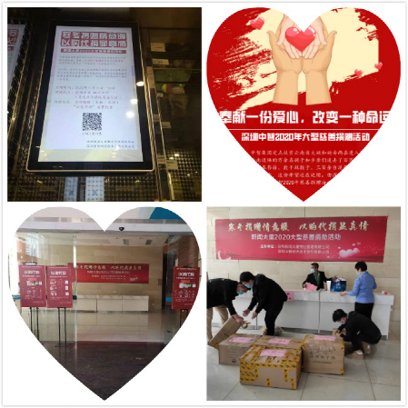 重宣傳,擴大慈善捐贈“朋友圈”?;顒忧捌?,深圳公司不僅通過郵箱、微信群、微信公眾號向公司全體員工及合作伙伴發(fā)起倡議,同時聯(lián)合新聞大廈物業(yè)加強宣傳,通過線上電梯廣告全天滾動播放、線下1樓設(shè)置實物捐贈點相結(jié)合,附以KT版展架、橫幅等多元化宣傳載體,積極宣傳、動員廣大社會愛心人士參與本次捐贈活動。